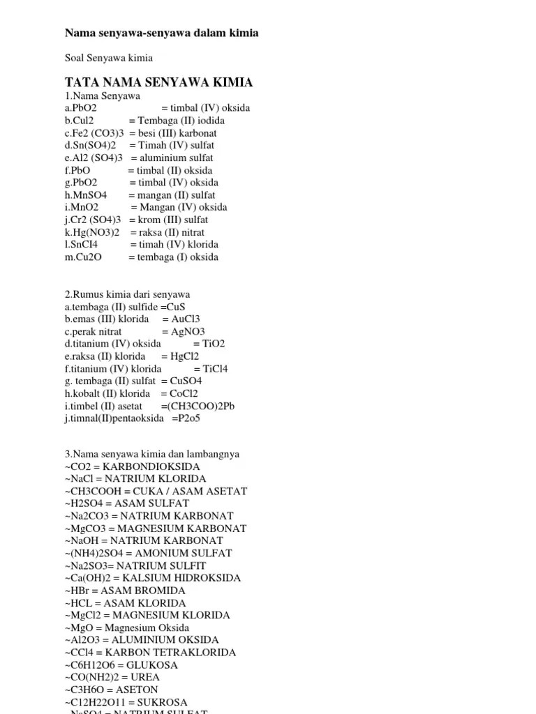 Snso4 = timah (ii) sulfat . • rumus kimia adalah gabungan dari dua unsur atau lebih yang sama . Tata nama senyawa kimia adalah rangkaian aturan penamaan senyawa yang dibuat secara sistematis. 2) daya hantar listrik senyawa ionik yang dinaksud dengan ikatan ionik. Gambar 4.23 tampilan tata nama senyawa biloks.