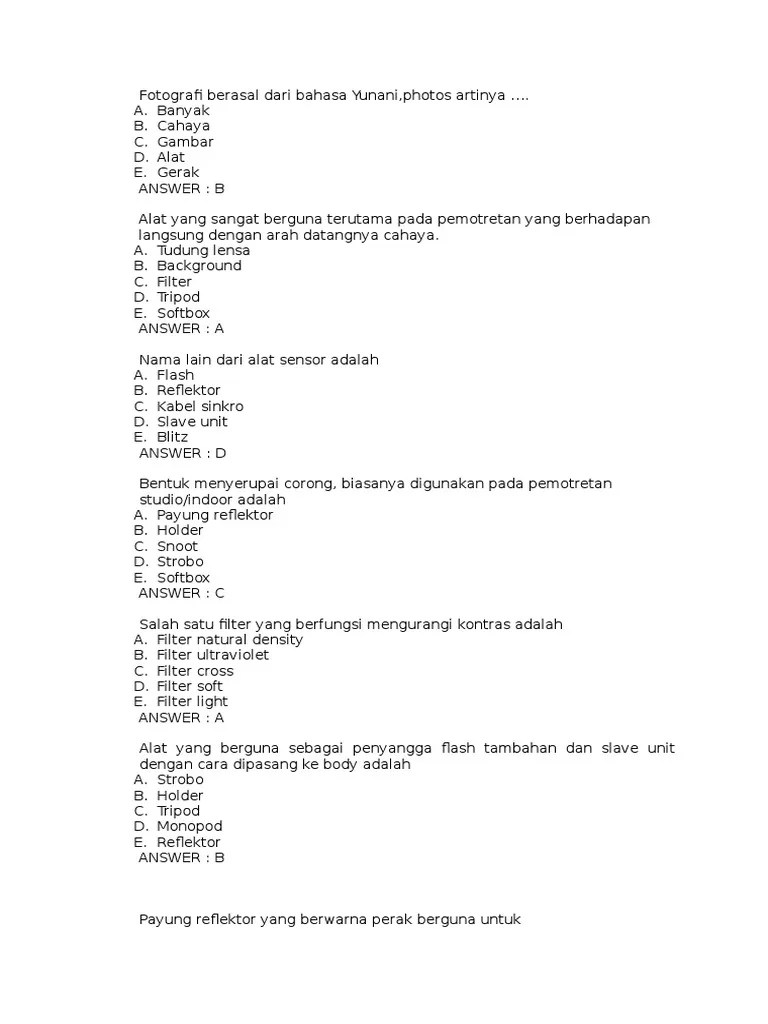 Soal Fotografi Pilihan Ganda Dan Jawabannya : Soal Ulangan Kenaikan Kelas X Multimedia Fotografi Pdfcoffee Com - Soal essay fotografi dan jawabannya, soal uas fotografi kelas 11,.
